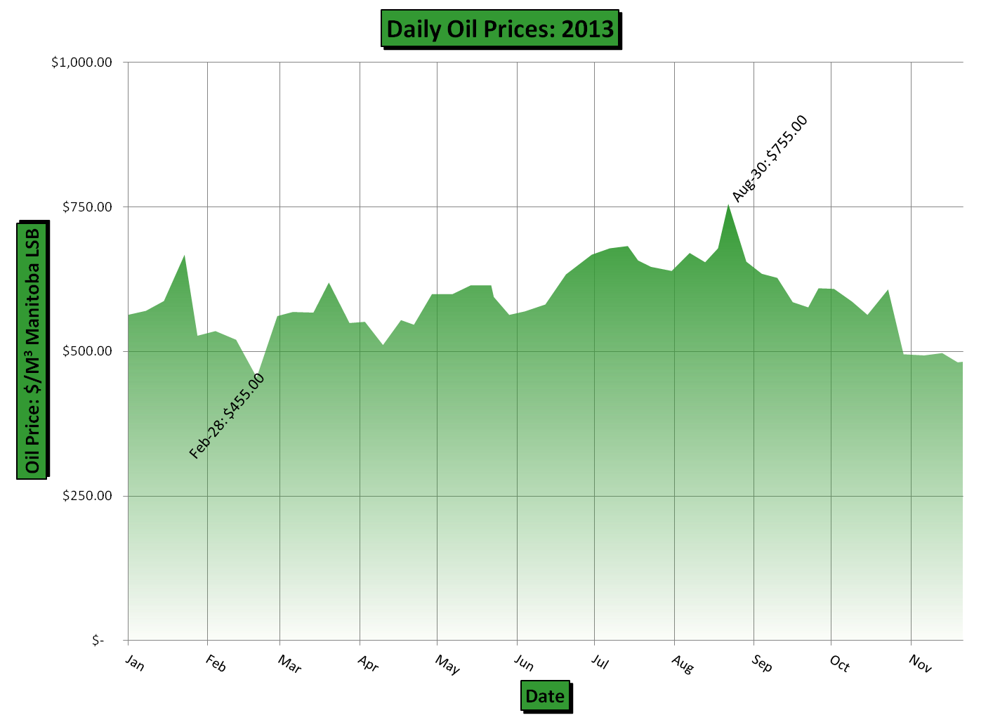 | Oil Prices: 1-Year, 2009-2013 | ||||||