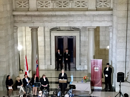 La présidente, Mme Myrna Driedger, a présidé à la réouverture officielle dans le cadre d’une cérémonie d’inauguration à la rotonde, suivie d’une visite de la Chambre nouvellement rénovée.