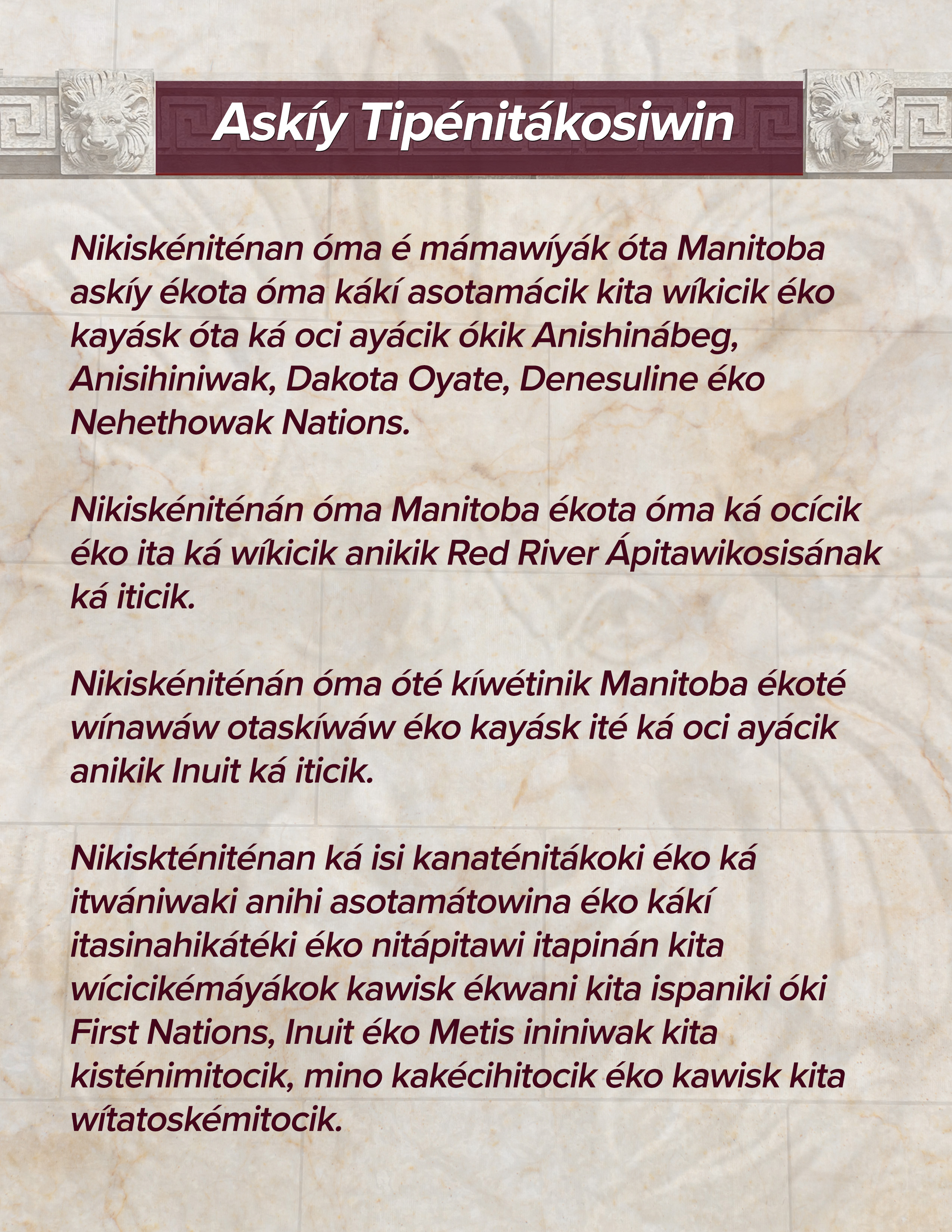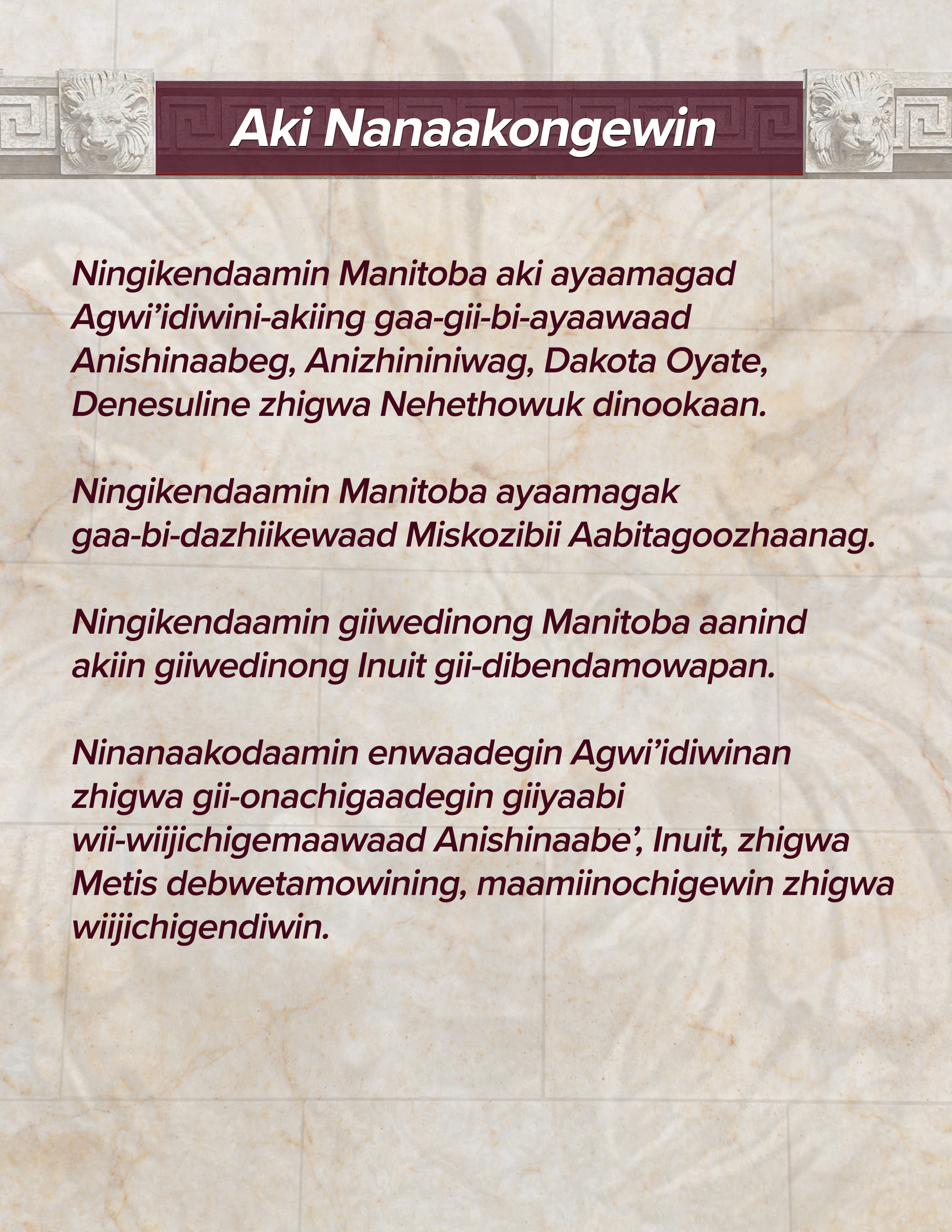 We acknowledge we are gathered on Treaty 1 Territory and that Manitoba is located on the Treaty Territories and ancestral lands of the Anishinaabeg, Anishininewuk, Dakota Oyate, Denesuline and Nehethowuk Nations.