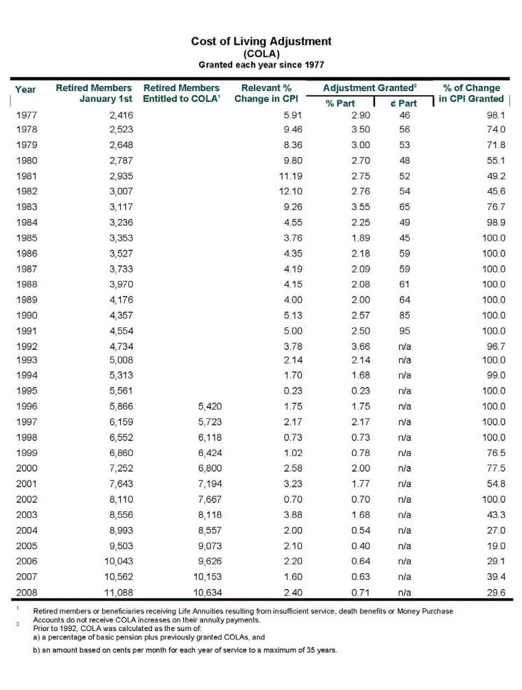 investment returns. Only a 52 percent of CPA COLA on average annually is