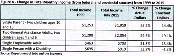 Mr. Eliasson: Just to be clear, most sources of federal income, like the child benefit, do not result in a reduction to the level of provincial support. That was restricted to Canada Pension Plan payments. The level of provincial support, I would guess, from 1999 has not decreased.