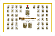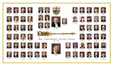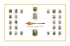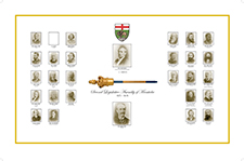 The Legislative Assembly of Assiniboia, formed in March 1870 was Manitoba’s first democratically elected government and ratified the Manitoba Act in June of 1870, allowing Manitoba’s entry into confederation. Consisting of 28 elected members, the Assembly carefully maintained a balance between French and English members with an executive made up of an elected President, Louis Riel, and his appointed Cabinet. Most members of the Assembly were native to the Red River Settlement and three-quarters were Métis. In making the transition to representative democracy in a period of months, the Assembly, to this day, remains a unique political body in Canadian history. The image of Louis Riel’s sash symbolizes the leadership that he and members displayed in a period of great uncertainty. |