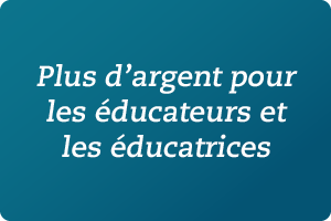Nous investissons plus de 90 millions de dollars pour mieux rémunérer tous ceux et celles qui prennent soin de vos enfants ainsi que pour leur offrir de nouvelles occasions de formation et de l'aide pour payer leurs droits de scolarité. Renseignez-vous.