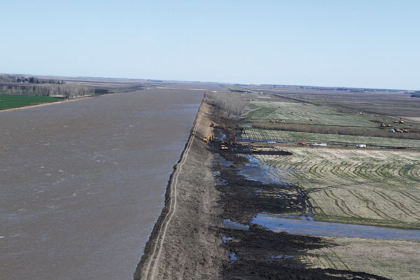 - Inspection, preparation and monitoring of the Assiniboine River dikes to handle flows of 510 cms (18,000 cfs),