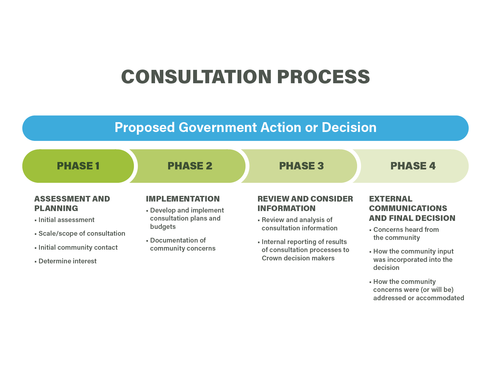 There are four phases in the provincial Crown-Indigenous consultation process:
