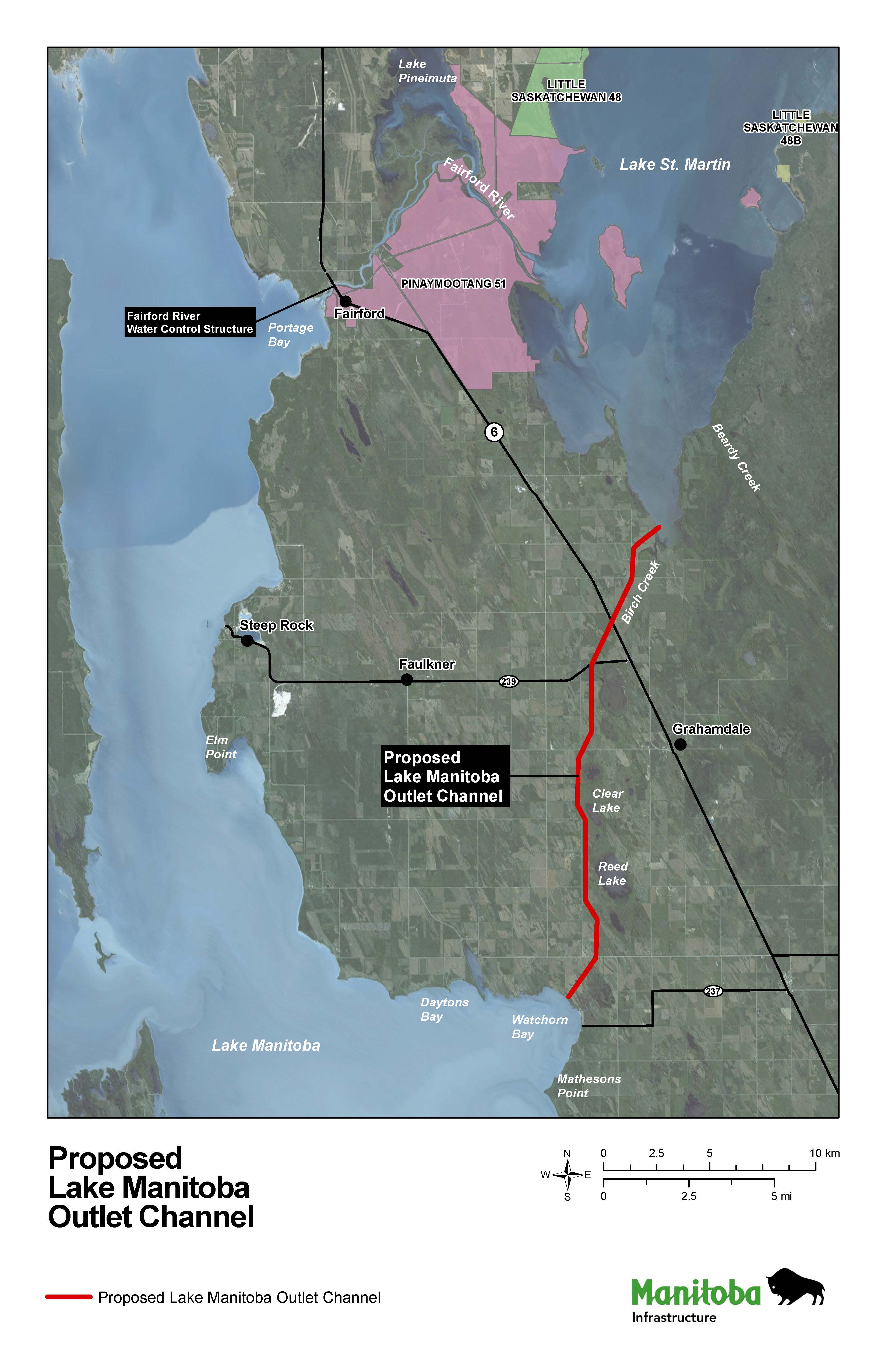 En décembre 2012, des consultants ont entrepris une étude exhaustive au nom du gouvernement du Manitoba en vue de déterminer et d’évaluer les moyens possibles de réduire les risques d’inondation du lac Manitoba et du lac St. Martin.