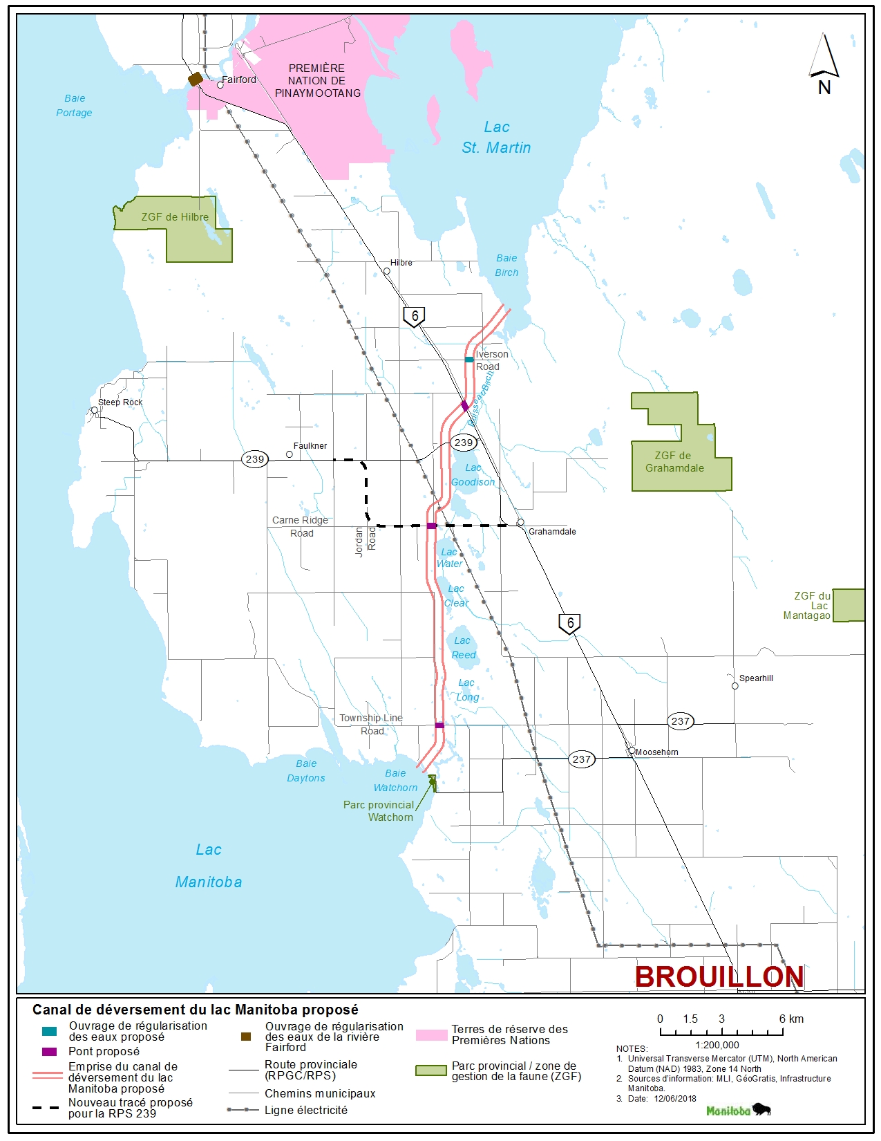 - Un chemin d’accès pour permettre la construction, l’utilisation et l’entretien du canal de déversement du lac St. Martin