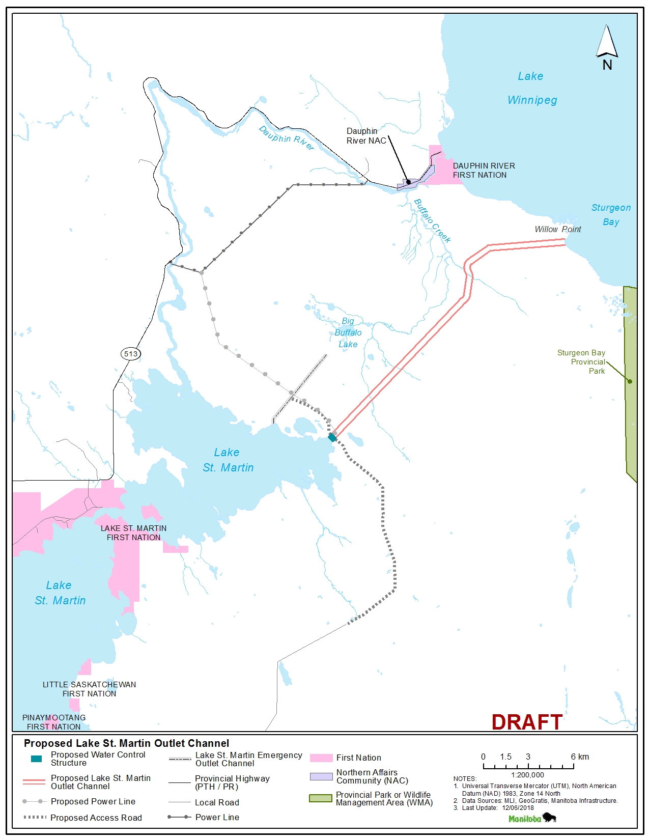 Le canal exigera le déplacement de l’entrée du canal existant et la construction d’un nouveau canal pour que l'eau puisse se déverser du lac St. Martin dans le lac Winnipeg. Le canal d’urgence existant du lac St. Martin (construit en 2011) sera ensuite utilisé pour recharger le complexe de terres humides et apportera des avantages environnementaux futurs.