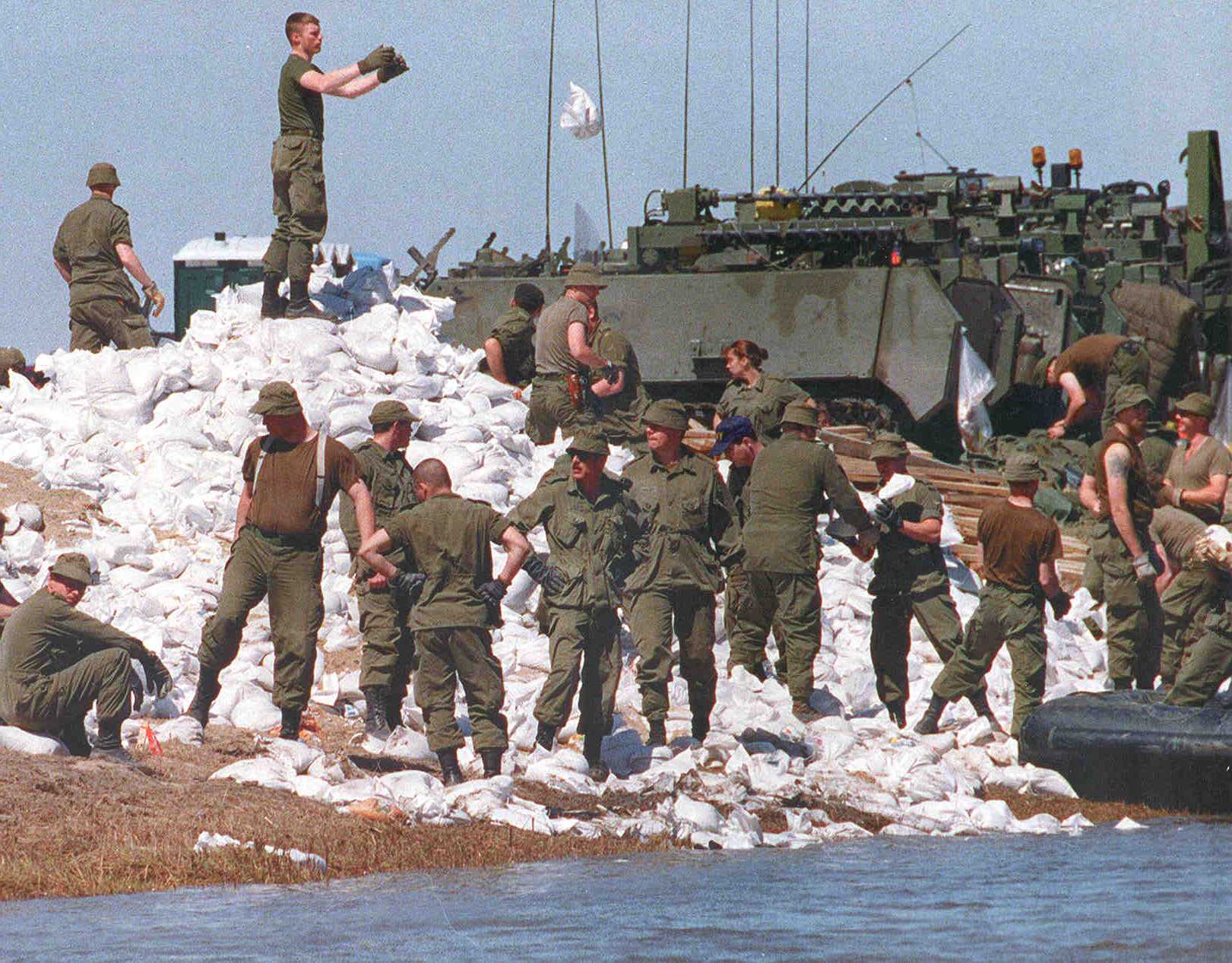 Over 7,000 military personnel were employed for 36 days to help prevent flood damage and relocate 25,450 evacuees. An estimated 1,000 homes were damaged.
