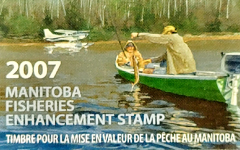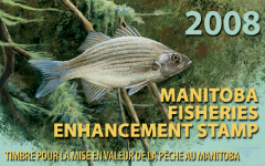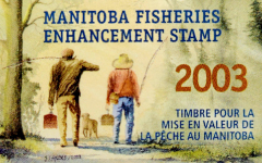 De 1993 à 2021, des artistes manitobains ont été chargés ou invités à participer à un concours de peinture de timbres sur l’amélioration de la pêche afin de promouvoir la pêche à la ligne et de soutenir les projets d’amélioration des pêcheries au Manitoba. Chaque année, l’œuvre gagnante a été reproduite sous forme de tirages limités et de timbres qui ont été apposés sur tous les permis de pêche provinciaux. Les timbres ont été supprimés après 2021.