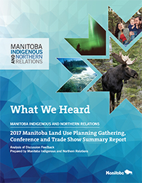 Le premier 2017 Manitoba Land Use Planning Gathering, Conference and Tradeshow a eu lieu à Winnipeg, au Manitoba, en janvier/février 2017. L'objectif de l'événement était d'échanger des renseignements et de renforcer les capacités, les relations et les réseaux entre les conseils de gestion et d'intendance des ressources, les gouvernements et les entreprises. Réconciliation avec les peuples autochtones et Relations avec le Nord Manitoba a rédigé un rapport sommaire sur ce que nous avons entendu, et les résultats soulignent le succès de ce premier événement, comme en témoignent les commentaires positifs et une meilleure compréhension de l'aménagement du territoire au Manitoba.
