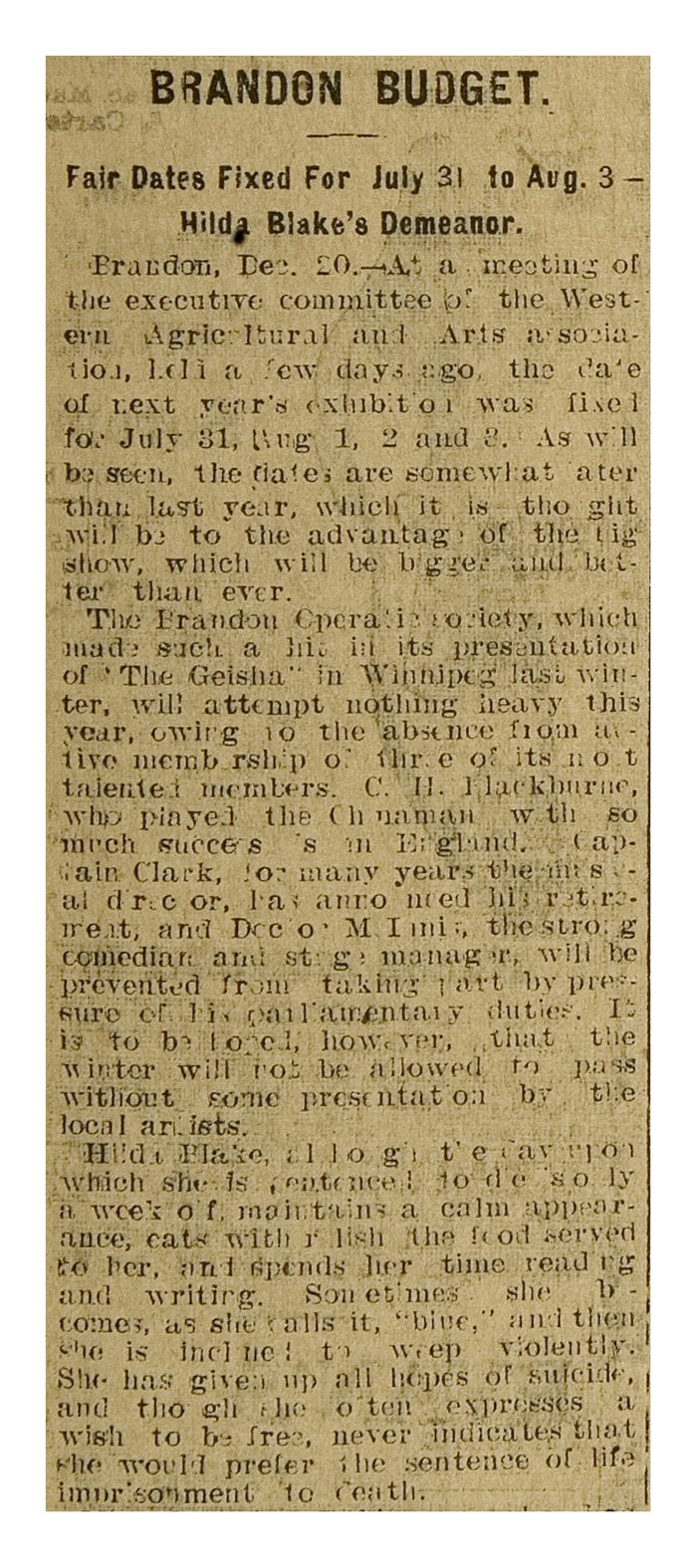 "Hilda Blake's Demeanor", 21 December, 1899.