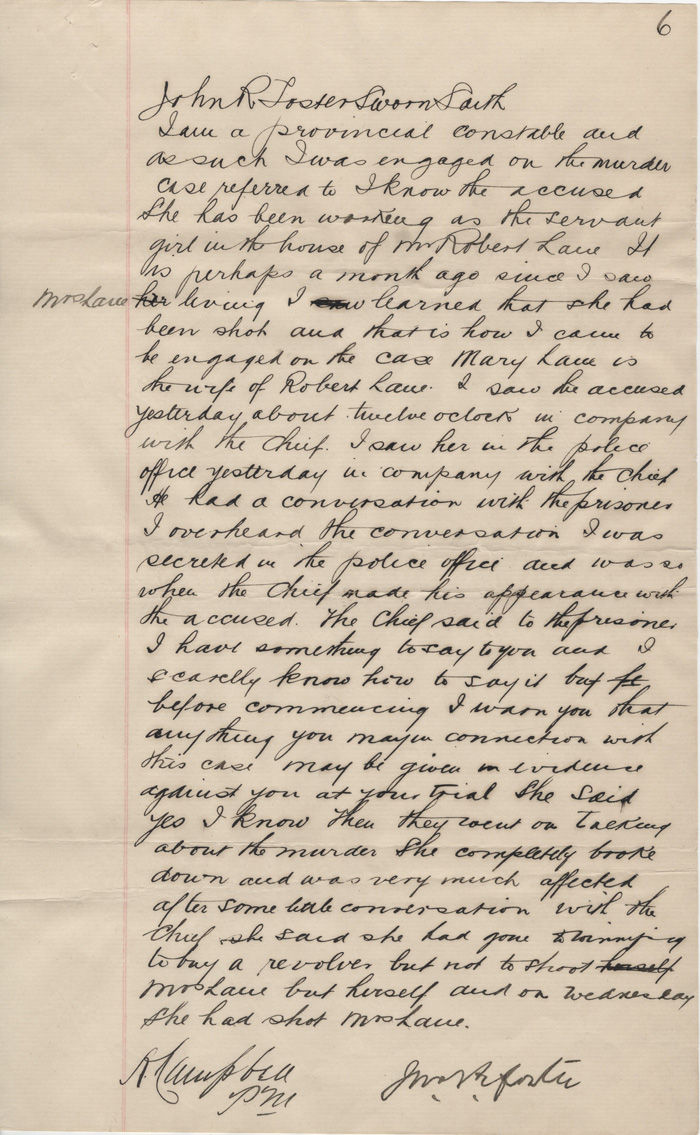 Deposition of Witnesses in the Emily Hilda Blake murder case, page 6.