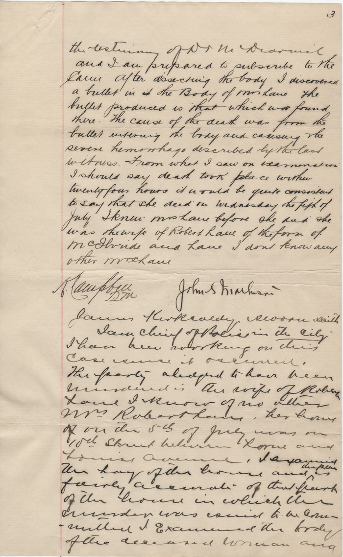 Deposition of Witnesses in the Emily Hilda Blake murder case, page 3.