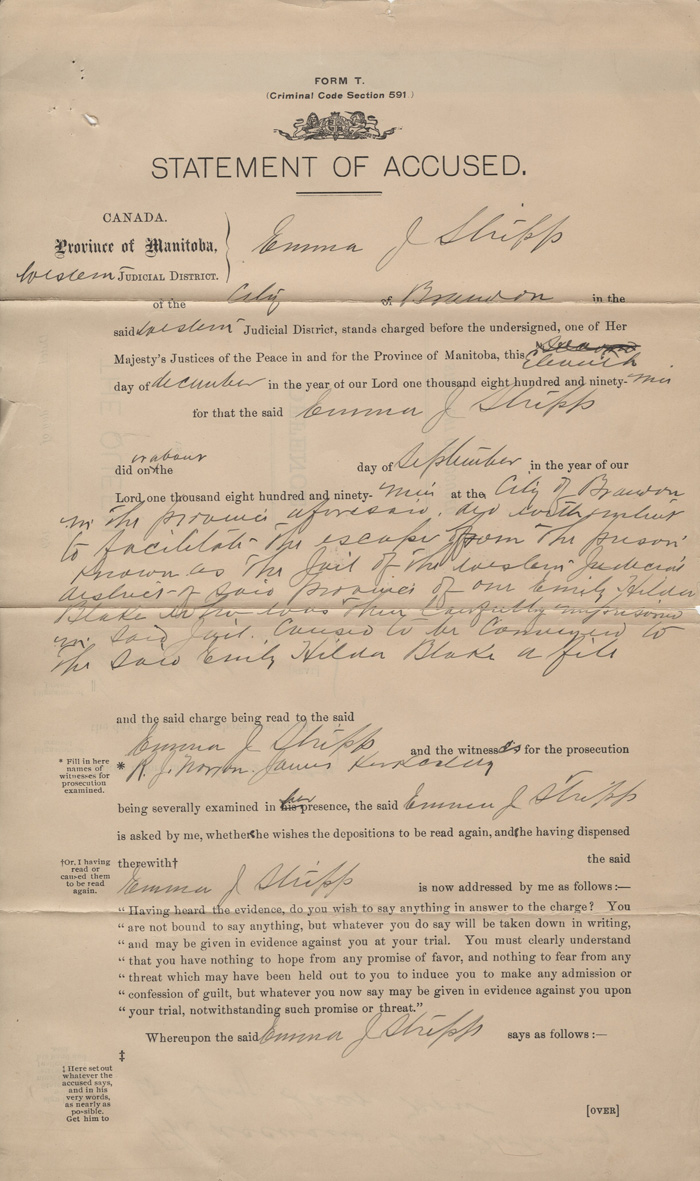Statement of Accused in the Emma J. Stripp trial, page 1.