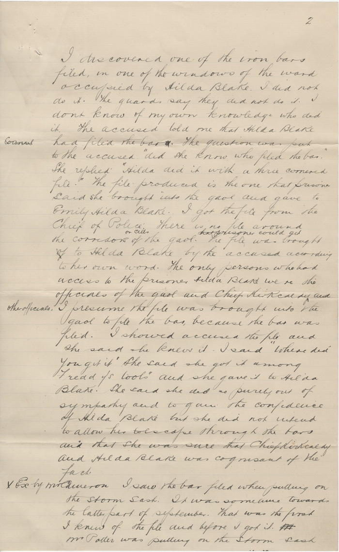 Deposition of Witnesses in the Emma J. Stripp trial, page 2.