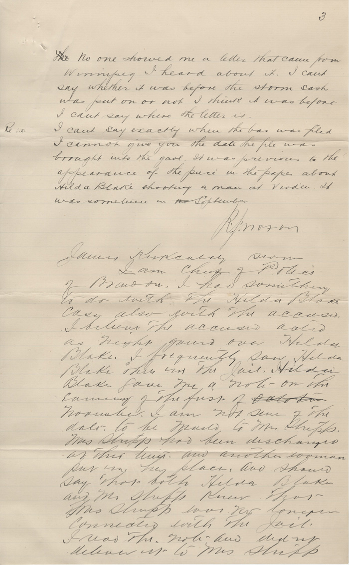 Deposition of Witnesses in the Emma J. Stripp trial, page 3.