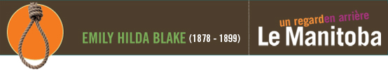 Emily Hilda Blake naquit en 1878 et devint orpheline en bas âge. Elle vécut à la maison des pauvres de Heckingham, en Angleterre. À l’âge de 10 ans, elle fut envoyée au Canada avec son frère, Tommy. Elle travailla d’abord comme domestique pour Alfred et Letitia Stewart, près de Brandon, au Manitoba, mais elle changea continuellement de famille durant le reste de son enfance. Ainsi, sa tutelle finit par faire l’objet d’un litige. Blake s’installa finalement à Brandon en 1898 et travailla à titre de domestique pour Robert et Mary Lane. Le 20 juin 1899, elle acheta un revolver et des munitions dans une armurerie de Winnipeg. Quelques jours plus tard, Blake abattit Mary Lane alors que cette dernière suspendait des rideaux.