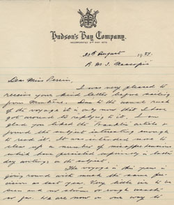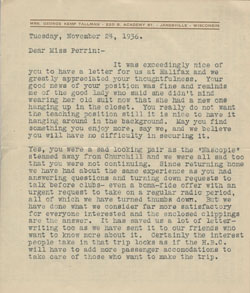 Once Gertrude returned home she stayed in touch with the people she met aboard the ship through cards and letters. As suggested in her diary she became quite friendly with some of the HBC passengers and members of the Eastern Arctic Patrol. She found that, similar to her own experiences, many of her fellow tourists were being asked to give talks about their time aboard the ship.