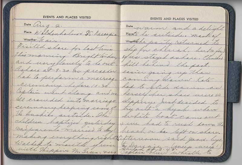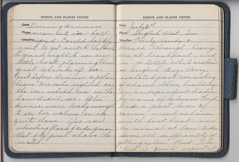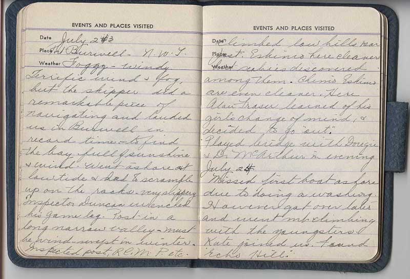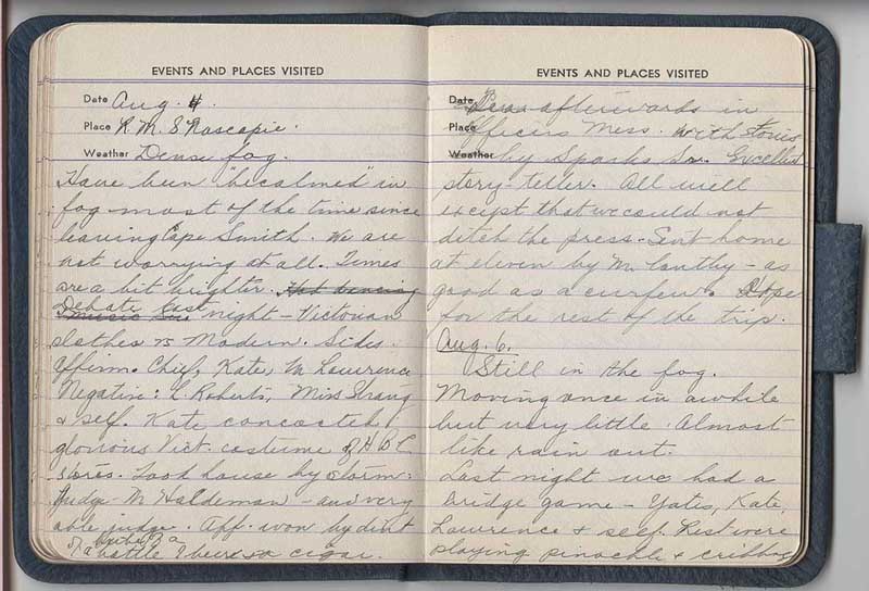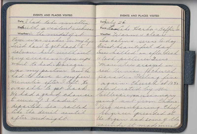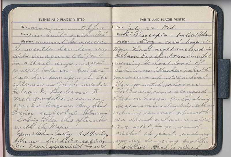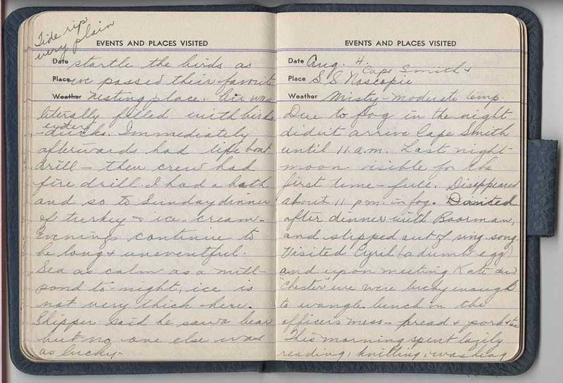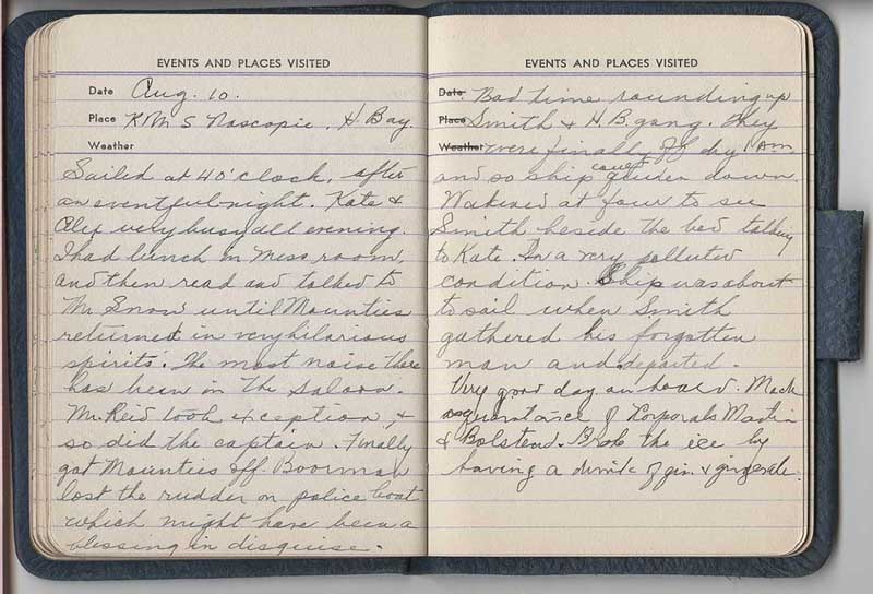 Gertrude Perrin's travel diary: 1936 voyage aboard the "Nascopie". HBCA, Gertrude Perrin fonds, HB2008/004