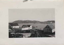 H.B.C. store and warehouse. This post not on usual call of "Nascopie". Lies in a land locked harbor. Fish nets on drying rack. |