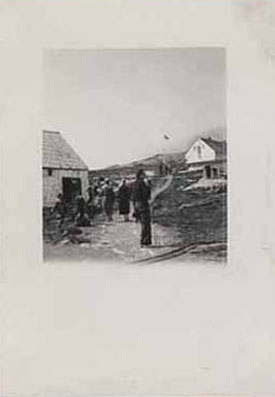 The muddy path leading up to the post manager's house. Miss Strang & Mrs Harp walking up the path. |
