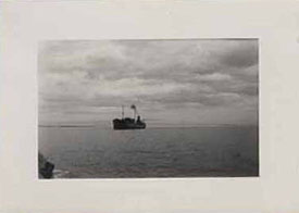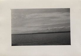 Contraptions for mosquitoes. Mine belonged to the captain. Mosquitoes here in millions. Picture taken on the long pier made of rock and sand. At low tide boats could come only to the end of it. The sign on the hill some ten or fifteen feet in height first made by Bill Smith.