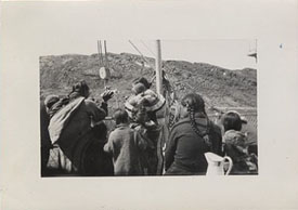 Natives at Lake Harbor showing system of carrying the babies in the hoods.