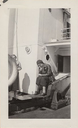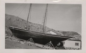The "Nanook" H.B.C. boat at Lake Harbor still on its winter skids. It was to be put into the water soon after we left. "Nanook" means Bear. |