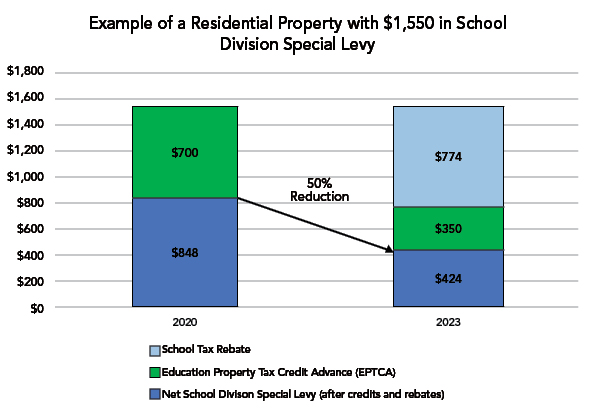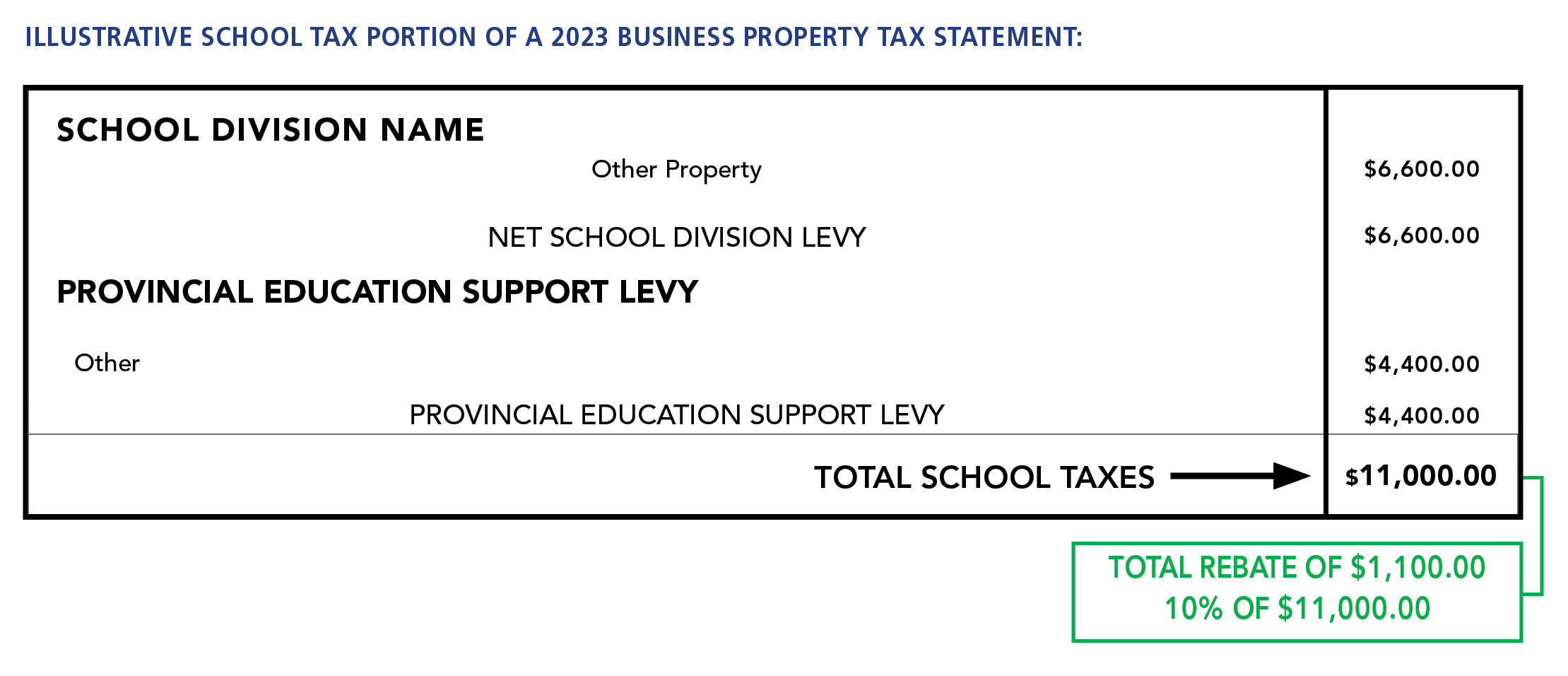 Other property owners will receive a 10 per cent rebate of the total school division special levy and education support levy for 2024 applied to their property tax notice.