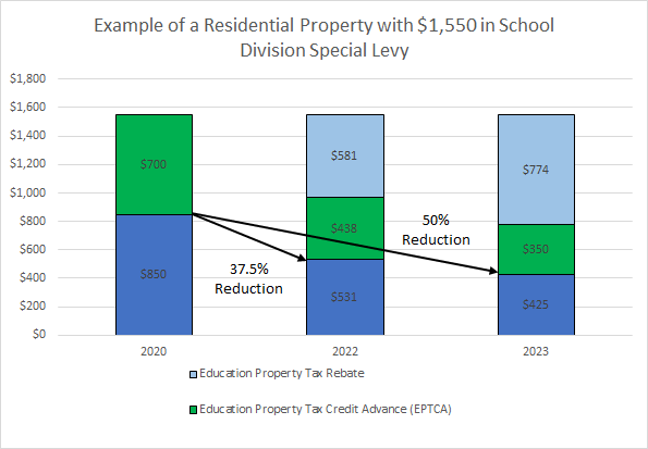 Other property owners will receive a 10 per cent rebate of the total school division special levy and education support levy for 2024 applied to their property tax notice.