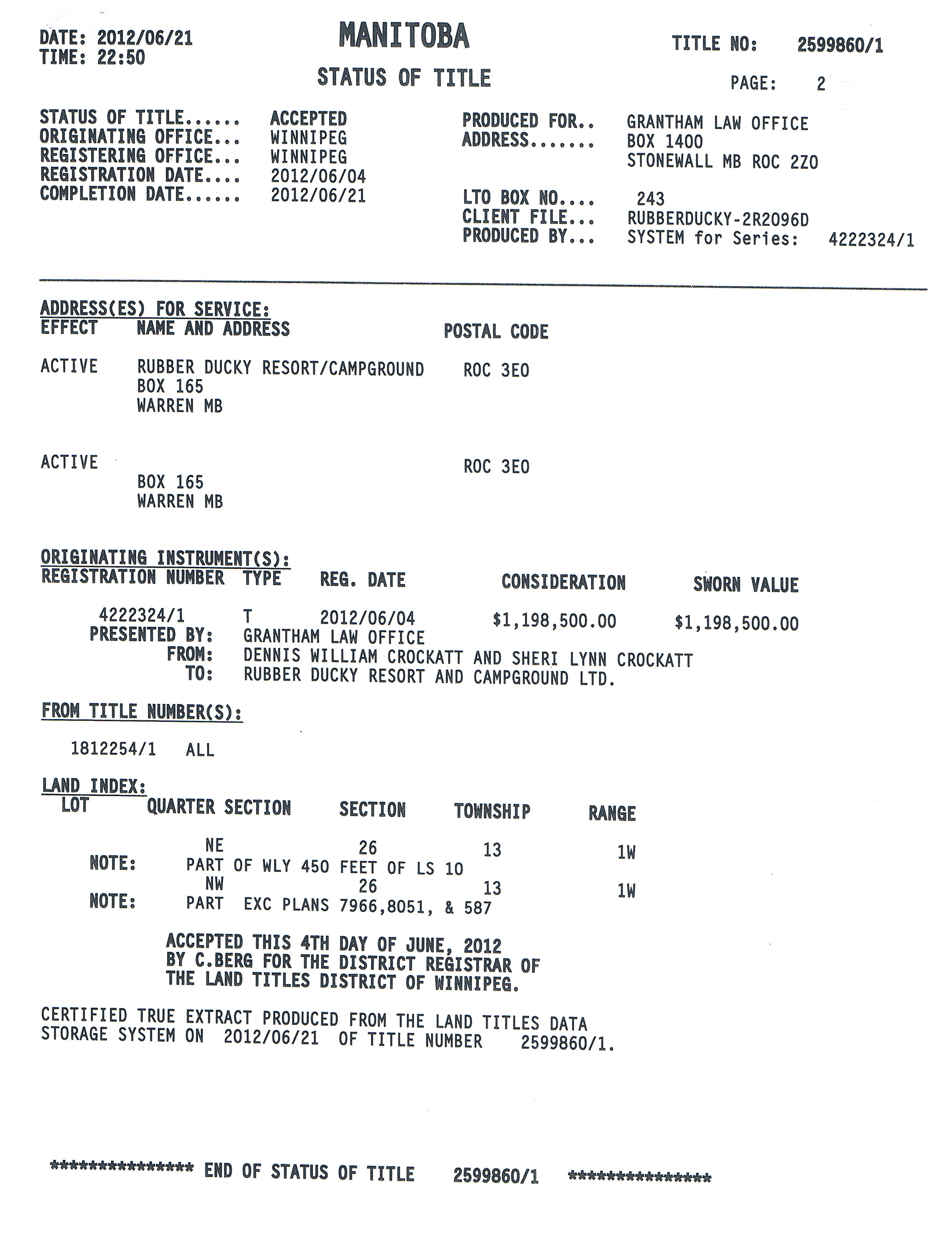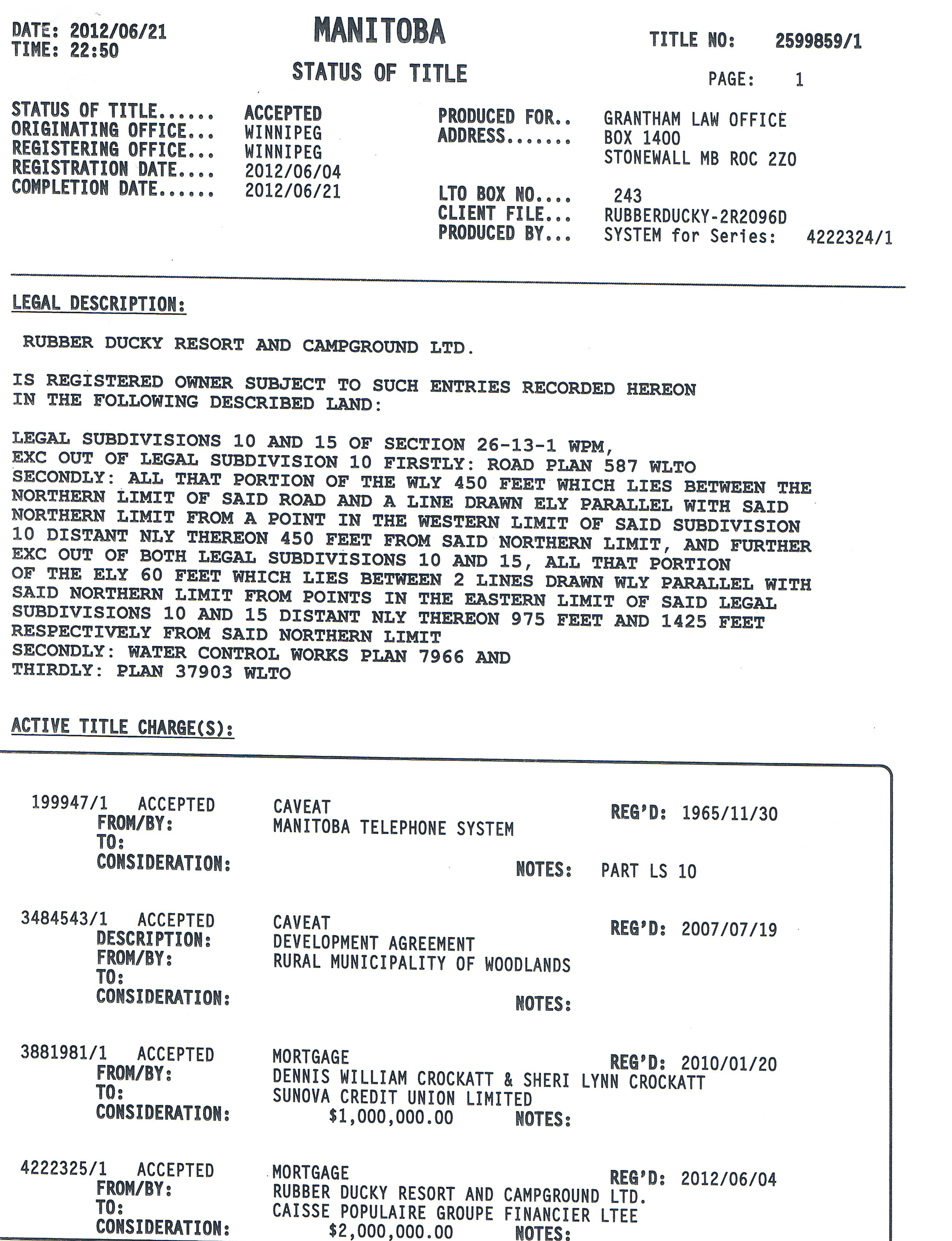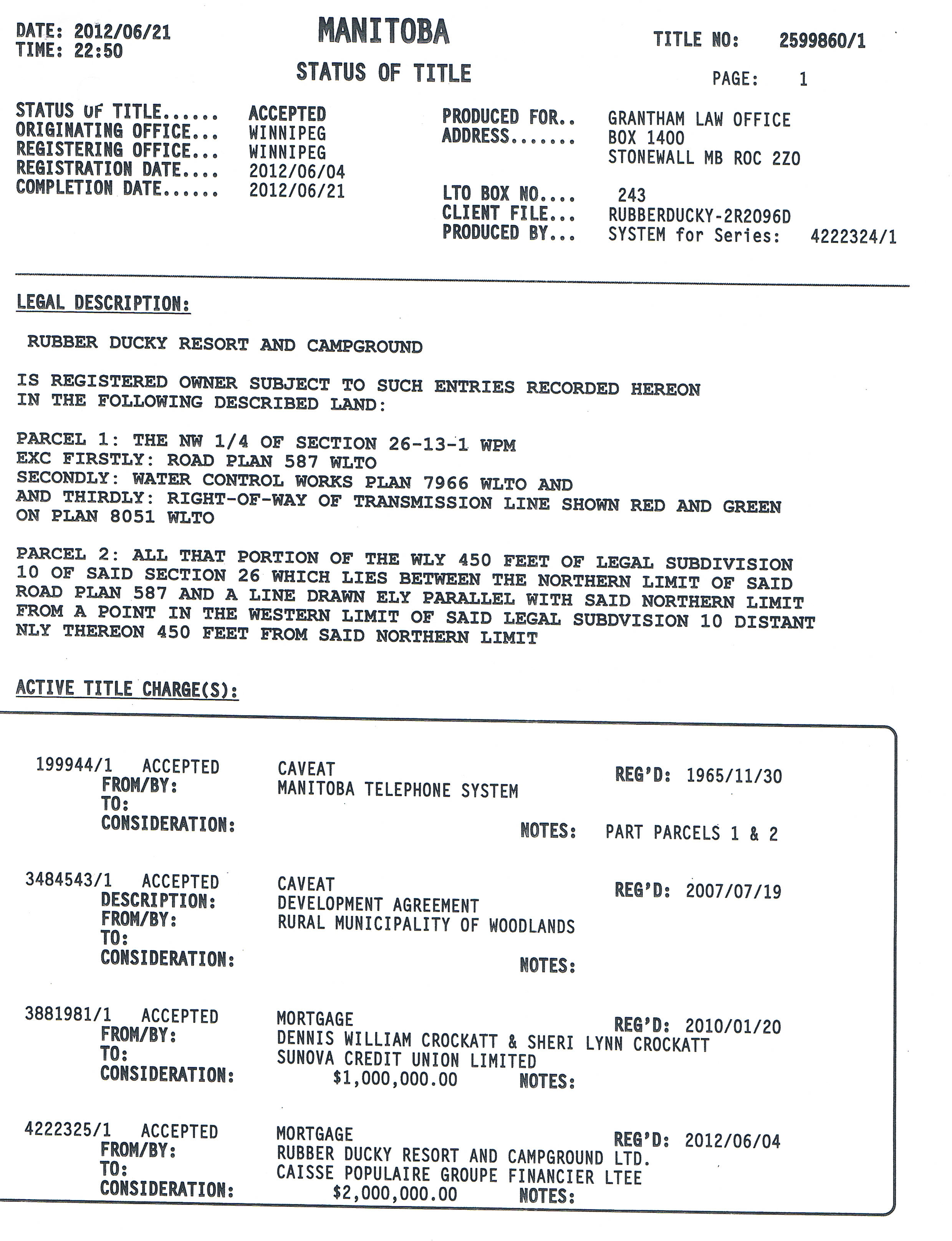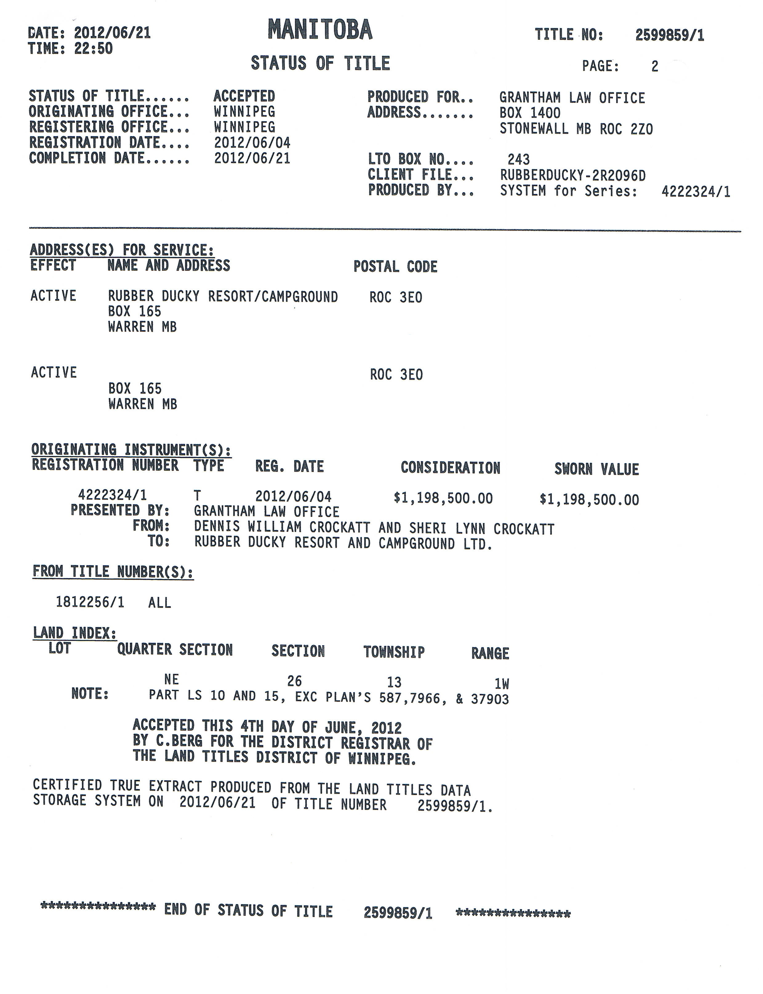 Public Registry 5589.00 - Rubber Ducky Resort and Campground Ltd. - Sewage Treatment Plant