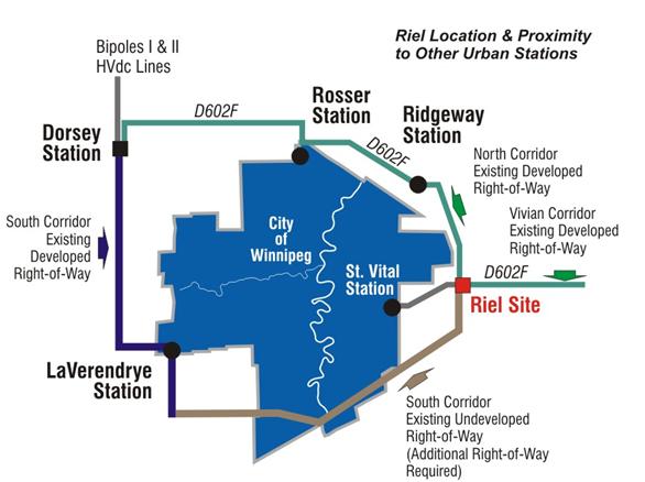 MH's transmission facilities have been developed and are operated as an integrated system, with the backbone being two 800 kilometre, high voltage, direct current (HVdc) transmission lines (Bipole I and II). A third HVdc line (Bipole III) approximately 1,400 km in length is currently under construction. The initial HVdc lines (Bipole I and II) were located in a common transmission corridor and transmitted over 70 per cent of Manitoba Hydro’s annual energy production from its northern hydro stations on the Nelson River to southern load centres. Due to the reliance on one transmission corridor and a single station in southern Manitoba (Dorsey), the system is vulnerable to extensive power outages from fires or other extreme weather events or catastrophic failures. A new HVdc transmission line and new Riel converter station in southern Manitoba are being constructed to reduce dependency on the Dorsey Station and the existing HVdc Interlake corridor to assure the reliability of power to Manitobans.