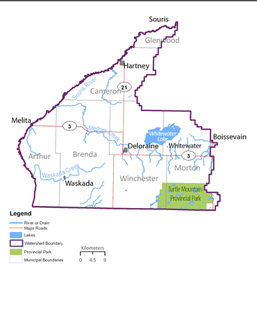 The East Souris River Integrated Watershed Management Plan encompasses the area of land which contributes water to the Souris River from the east, including tributaries such as Chain Lakes Creek, Medora Creek and Waskada Creek. The Turtle Mountain Conservation District led plan development in partnership with the provincial government and a team of supporting agencies, interest groups and watershed residents. East Souris River Integrated Watershed Management Plan - Second Generation Planning The East Souris River Integrated Watershed Management Plan, approved in 2006, was the first watershed plan to be completed in Manitoba. With 2016 marking the end of the 10 year implementation period of the plan, the Turtle Mountain Conservation District will again lead development of the 'second generation' of this plan. The planning process was initiated in the spring of 2017, and is a partnership with the provincial government and interested parties in the watershed. |