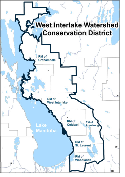 West Interlake Watershed Conservation District was established in 2008 and encompasses an area of approximately 6,945 km. The CD is located along the eastern shores of Lake Manitoba and adjacent to the East Interlake Conservation District. Participating municipalities include Armstrong, Coldwell, Grahamdale, St. Laurent, West Interlake and Woodlands.