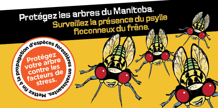 Le psylle floconneux du frêne est une espèce d'insecte envahissante dont la présence au Manitoba a été découverte en 2017. Le psylle s'attaque aux frênes de Mandchourie, aux frênes noirs et aux hybrides de ces deux espèces. Des études sont en cours pour déterminer s'il existe d'autres foyers d'infestation.
