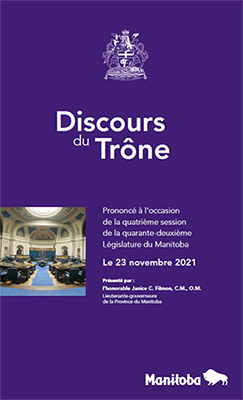 Le Discours du Trône du Manitoba indique que le gouvernement ouvre une nouvelle session de la Législature et résume ce que le gouvernement a l'intention de réaliser durant la session.