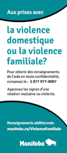 Si vous êtes victime de violence familiale, ou que vous connaissez quelqu’un qui pourrait l’être, veuillez composer le 1 877 977-0007 ou envoyer un message texte au 204 792-5302 ou au 204 805-6682.