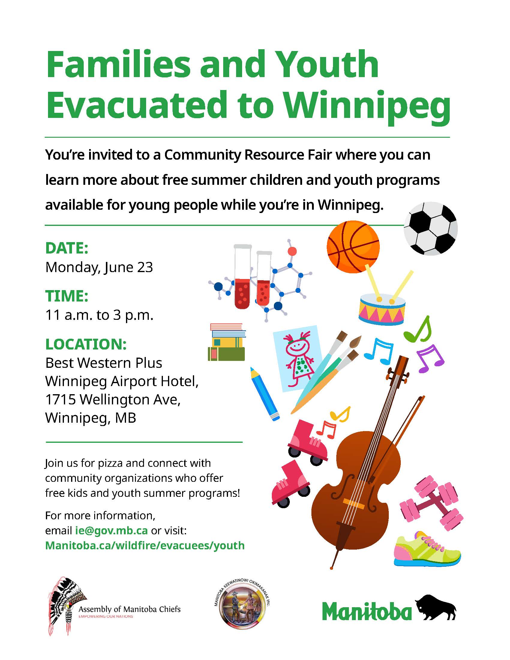 Information about health supports for evacuees, including mental health resources and Indigenous wellbeing supports, is available through Shared Health at sharedhealthmb.ca/news/wildfire-updates/.