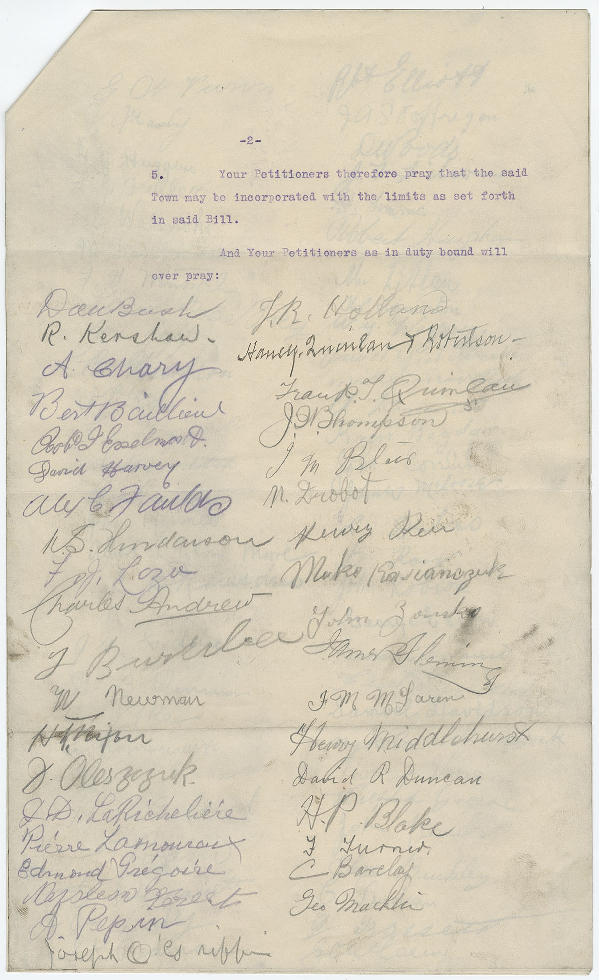 Petition from citizens of Transcona to be incorporated as a town, 1912 — Submission by Lee Gibson, former Archives of Manitoba volunteer